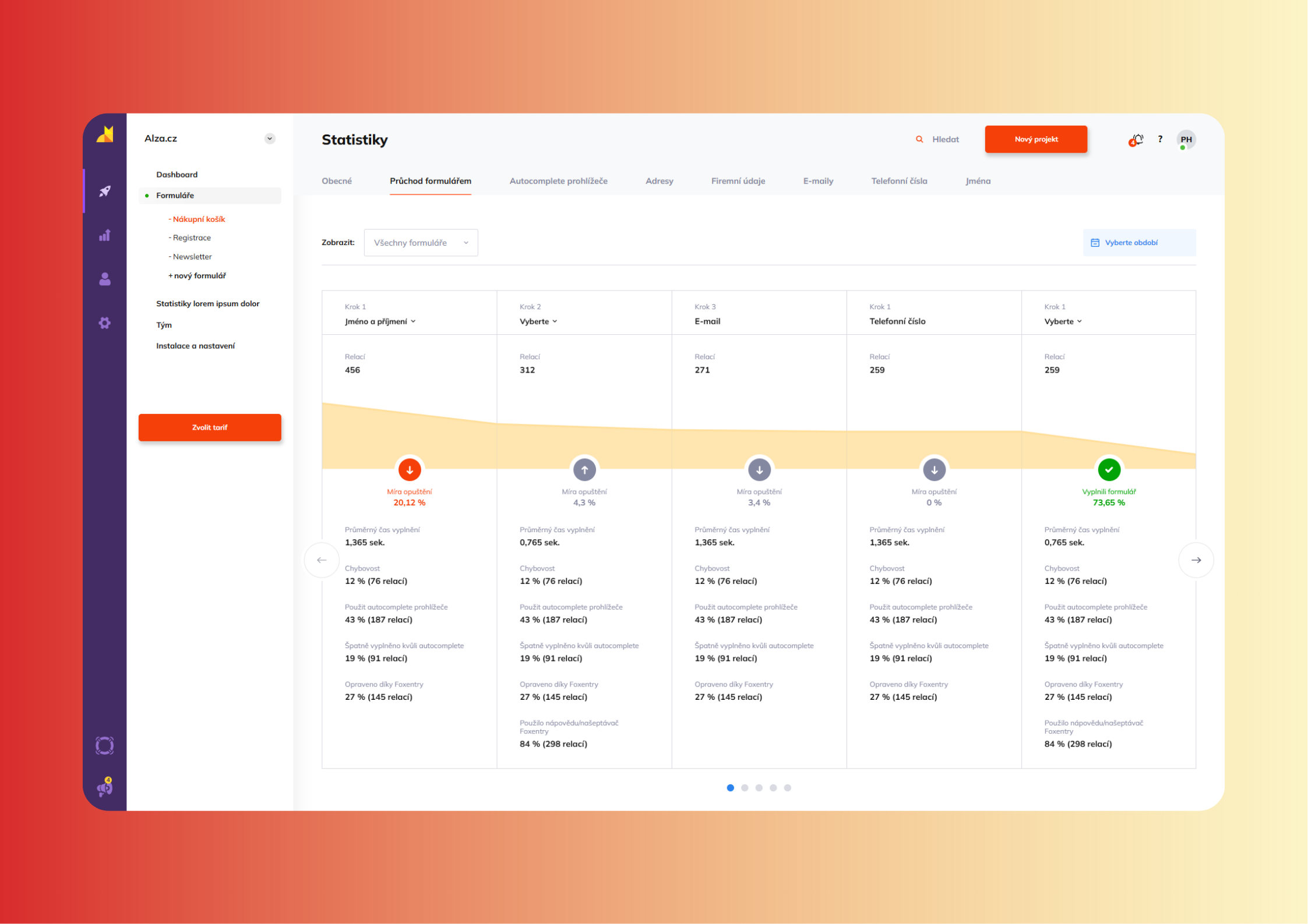 ANALYTIKA FORMULÁROVUnikátna analytika checkoutu: Ako jediní vám ukážeme, kde presne zákazníci v košíku váhajú, ktoré polia ich brzdia a prečo opúšťajú objednávku tesne pred dokončením.