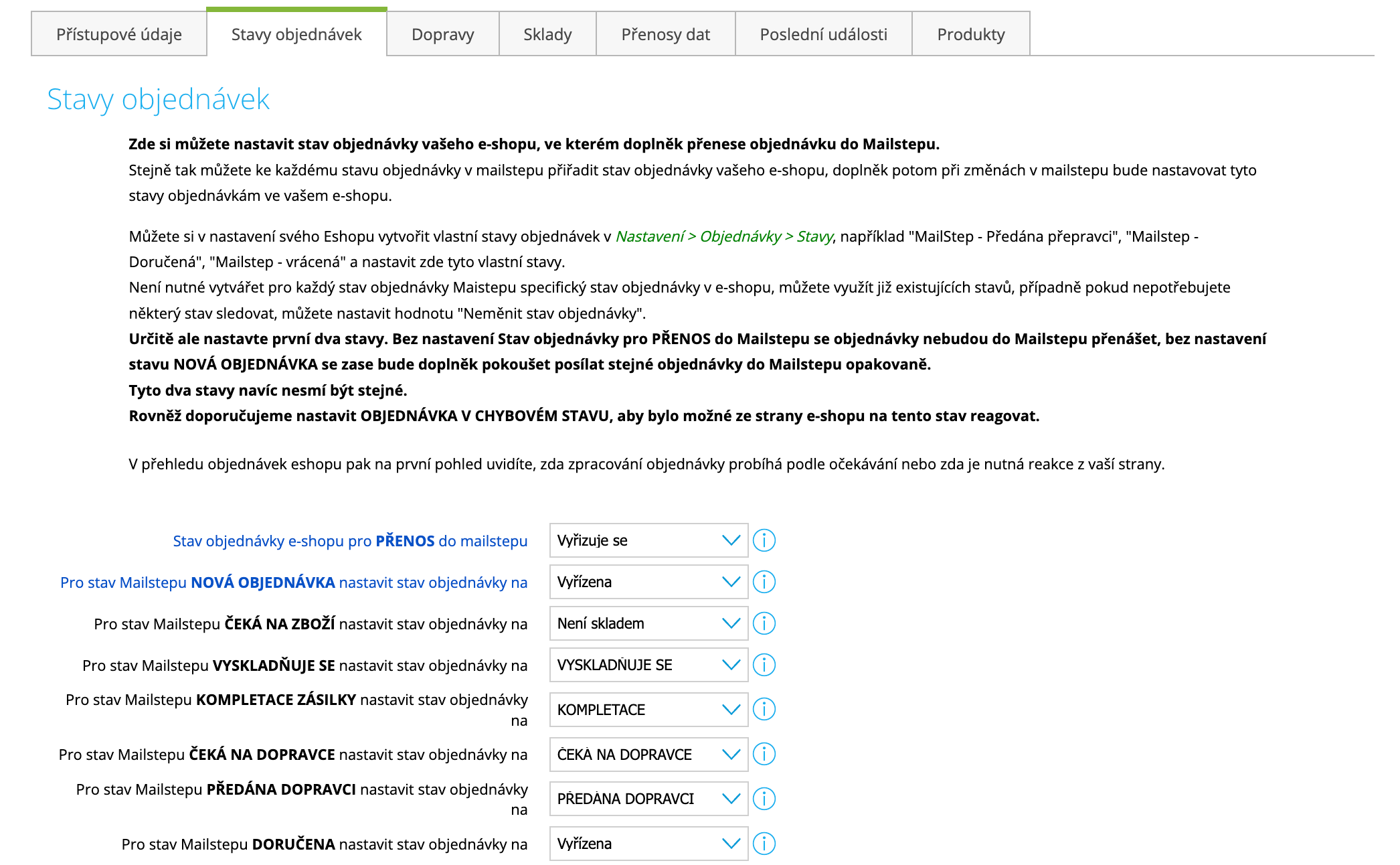 - Priebežne bude aktualizovať stav objednávky vo vašom e-shope na základe stavu spracovania zásielky v Mailshipu