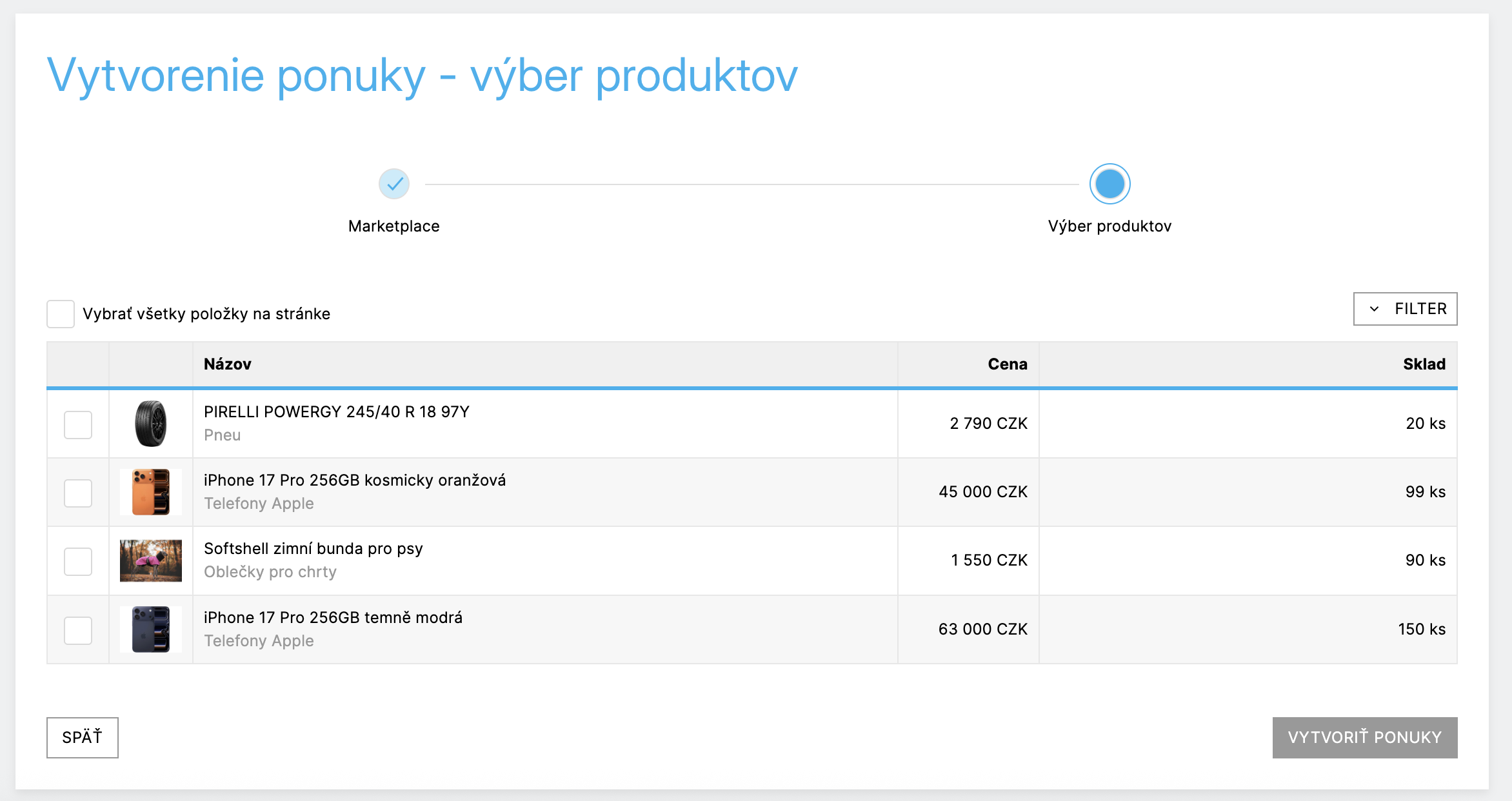 Ponuky jednoducho vytvárate z existujúcich produktov v e-shope. Služba umožňuje:
