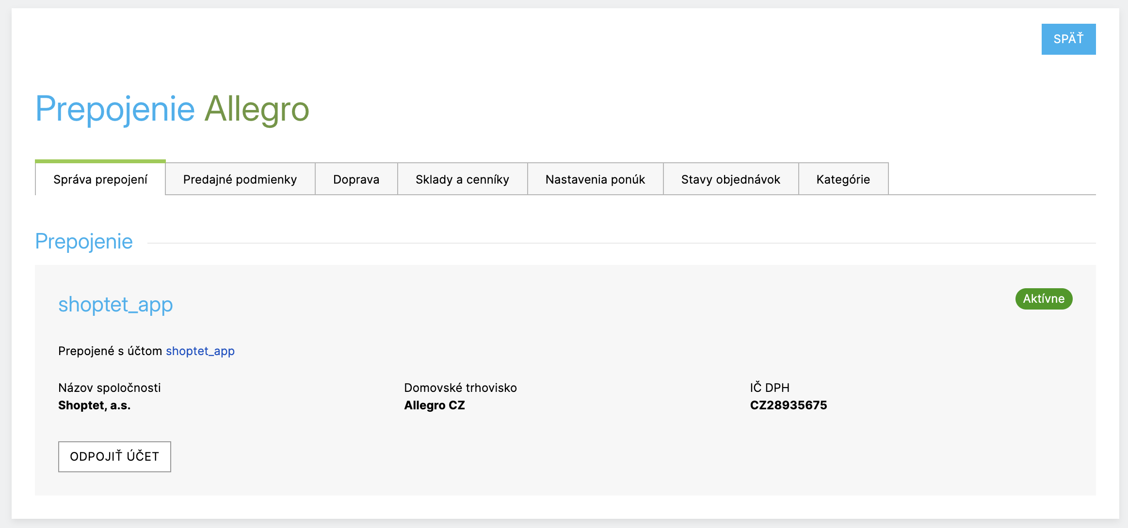 Potom si vyberiete cieľový marketplace, prihlásite sa alebo si vytvoríte účet a vykonáte autorizáciu prepojenia so svojím e-shopom. Spustenie predaja sa riadi podmienkami vybraného marketplace.