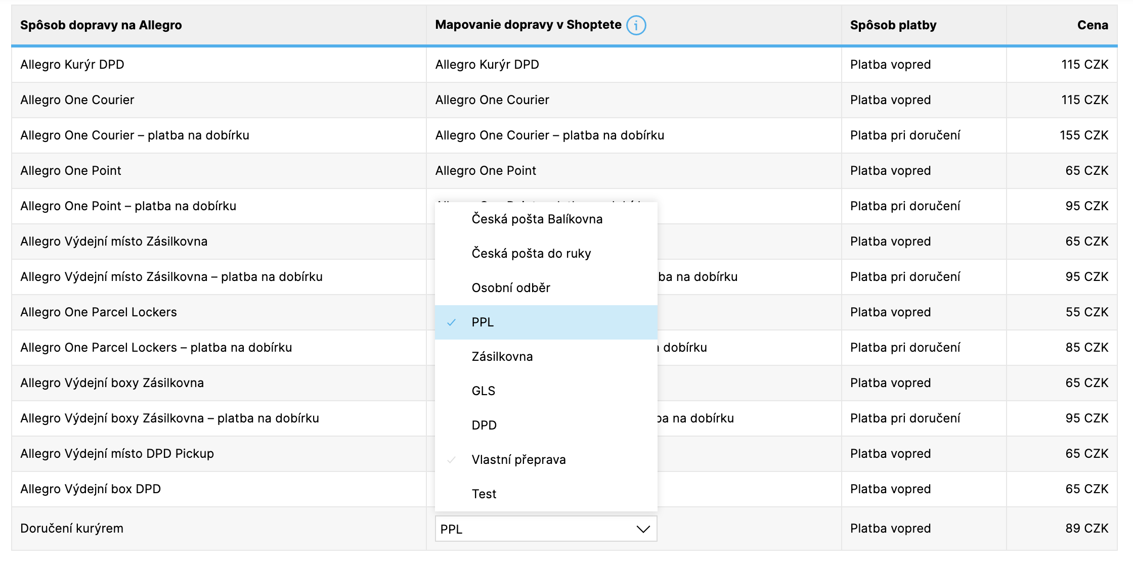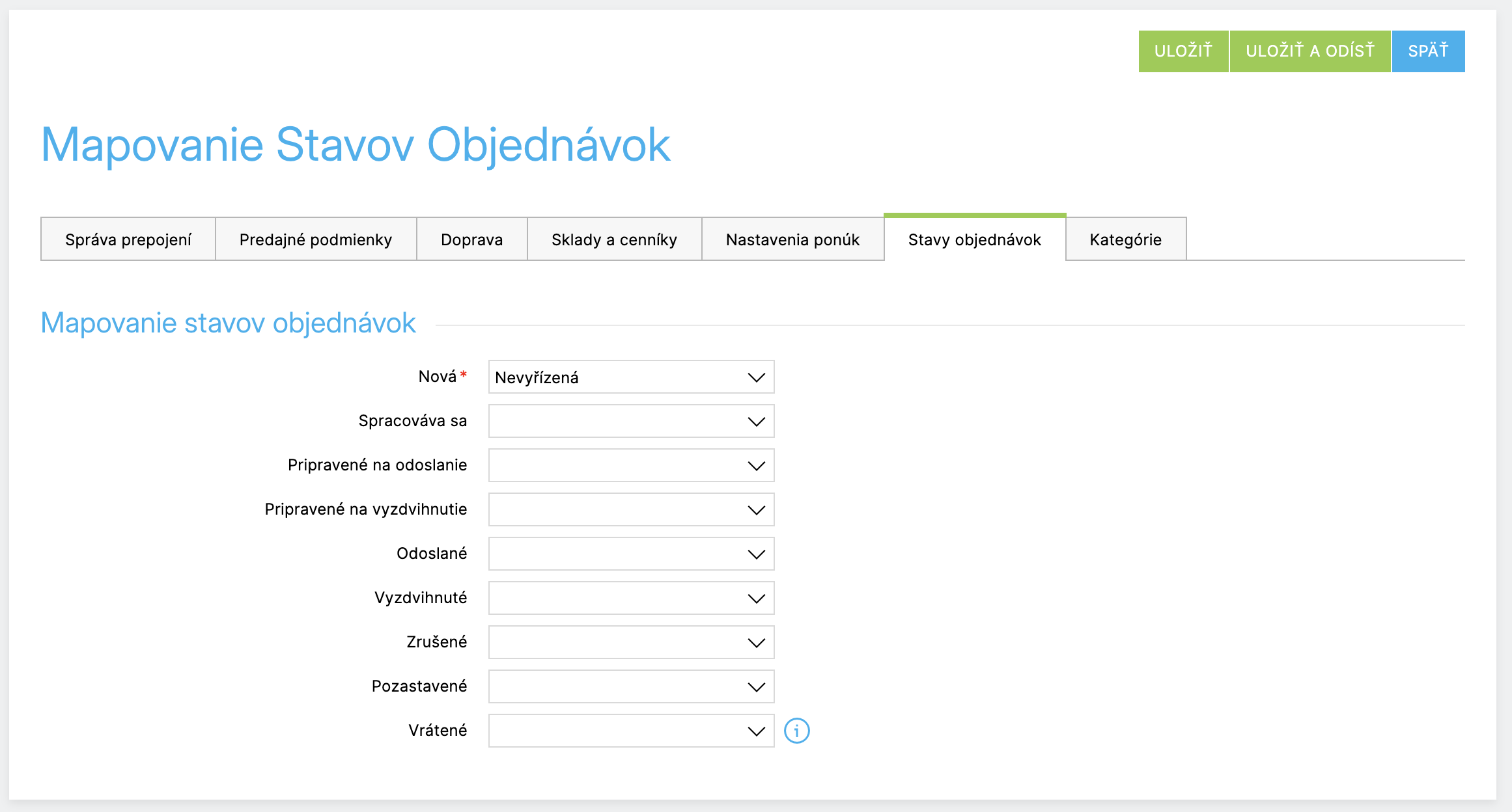 - Mapovanie stavov objednávok medzi Shoptetom a marketplace