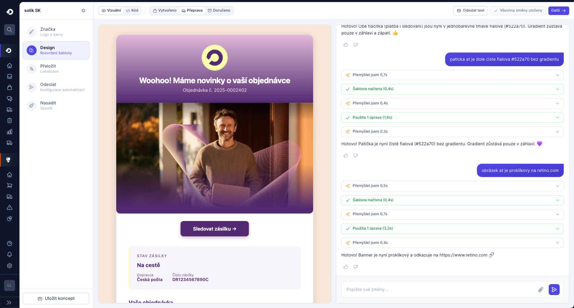 AI editor pre transakčné e-maily – nástroj, ktorý vám ušetrí hodiny práce a vytvorí originálne brandové e-maily presne podľa vašich predstáv. Stačí zadať URL vášho e-shopu a všetko sa začne diať samo.