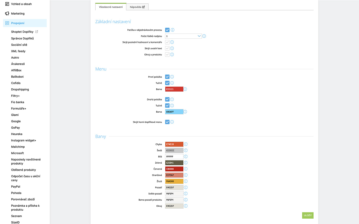 - Alebo sa dostanete do nastavení z administrácie svojho Shoptetu: Prepojenie → Šablóna Beryl