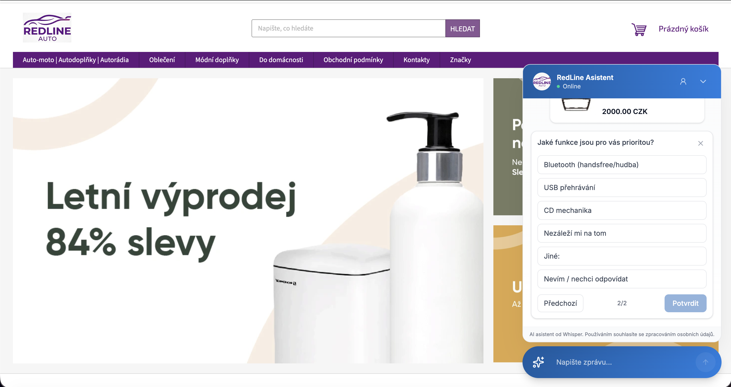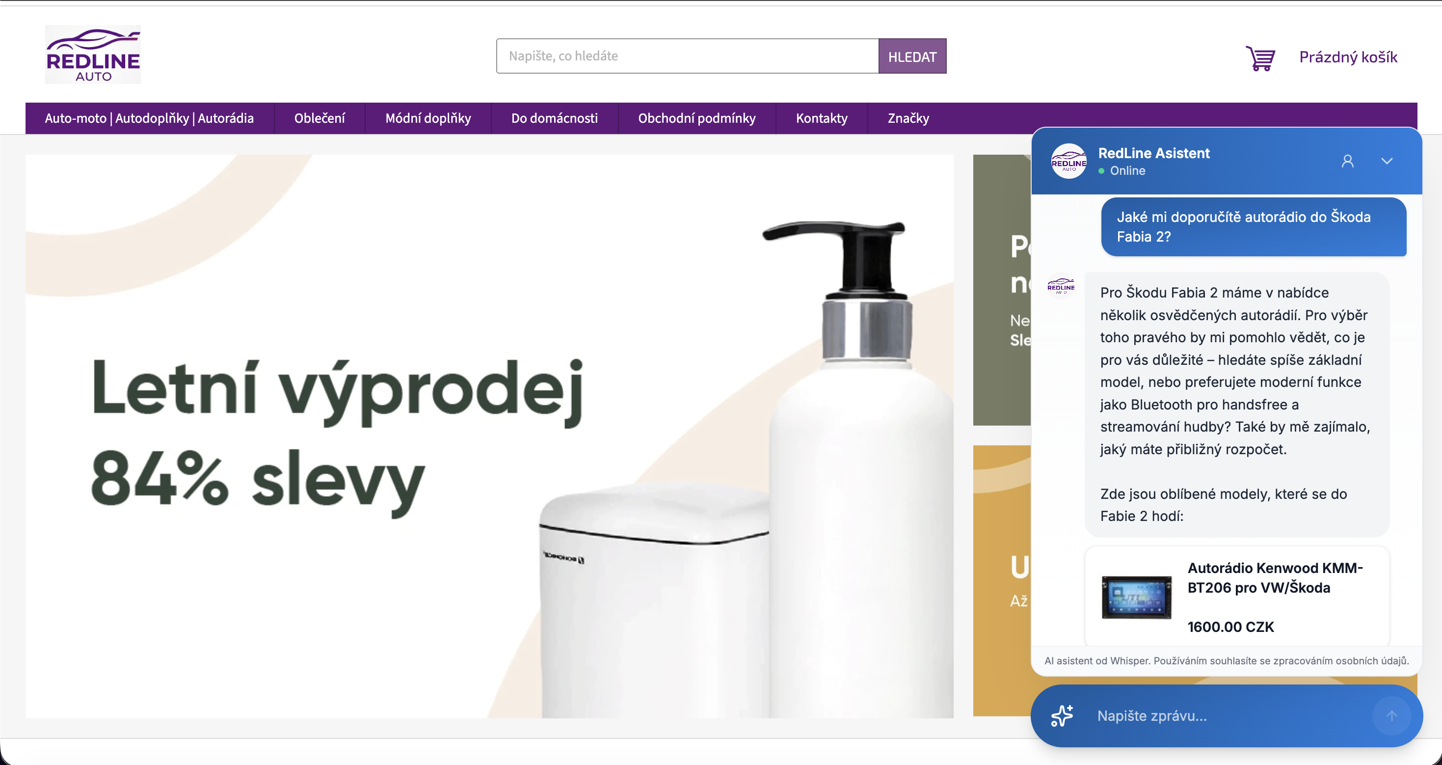 Whisper je ochotná AI posila pre váš e-shop, ktorá v sebe spája rolu proaktívneho predajcu aj zákazníckej podpory. Zákazníkov okamžite a vlúdne prevedie výberom tovaru a bleskovo vyrieši 80 % bežných otázok 24 hodín denne. S ťažšími prípadmi potom efektívne asistuje ľudským operátorom, čím e-shopu šetrí čas aj náklady a zvyšuje spokojnosť nakupujúcich.